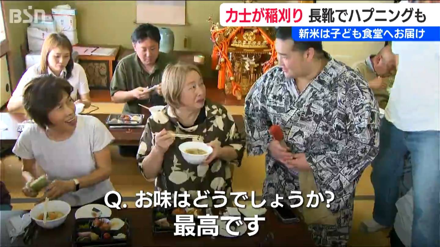Akinomaki 41,844 Posted October 4 22 hours ago, Akinomaki said: On 30/05/2025 at 23:08, Akinomaki said: Hoshoryu again did the rice planting ceremony at the Tatsunami farm together with Sachiko Kobayashi, now as yokozuna Hoshoryu was not at the harvest of the rice on the Tatsunami farm, maybe his tsukebito: Kitadaichi, Shunrai and 2 others from the heya afterwards, Tatsunami-beya chanko was served Next day at the Calore kitchen kids plaza npo-calore.jp/business/communityrestaurant, Sachiko Kobayashi with Kitadaichi, Kiryuko and Okaryu from Tatsunami-beya served onigiri and chanko-nabe to about 100 kids, made from 30kg of the freshly harvested Tatsunami farm rice o o o Share this post Link to post Share on other sites